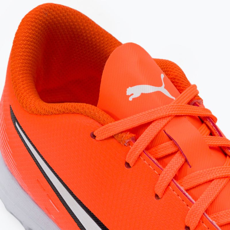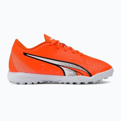 Открийте мощното представяне на детските футболни обувки PUMA Ultra Play TT. Проектирани за амбициозни млади футболисти, тези обувки осигуряват всичко, от което се нуждае младият спортист на терена, като позволяват ненадмината скорост, сцепление и комфорт. Изключително леката PU горна част намалява до минимум натоварването върху краката, което позволява свободно и динамично движение на терена. Благодарение на това решение младият футболист може да се съсредоточи върху играта, придобивайки предимство пред съперника. Този модел се отличава и с дизайна на езика, който осигурява много добро прилягане към детския крак.