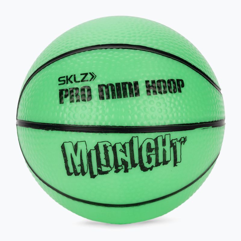 Баскетболната дъска и топката в модела SKLZ Pro Mini Hoop Midnight използват флуоресцентни технологии, които осигуряват видимост по време на игра на тъмно. Използваният материал абсорбира светлината и я излъчва под формата на интензивен блясък, позволявайки комфортна употреба след залез слънце. Благодарение на това комплектът е идеален за вечерни игри у дома, в офиса или в зала за игри.