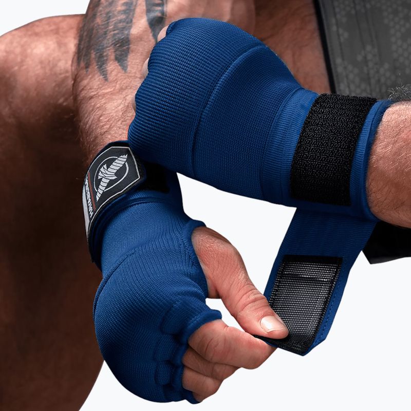 Вътрешни ръкавици Hayabusa Quick Gel Hand Wraps blue са надежден избор за любителите на бойните спортове, които се нуждаят от здрава защита на ръцете по време на тренировки.