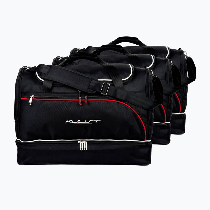 Комплект от 3 чанти за багажника KJUST за Peugeot e-208 (2019+) осигурява перфектно прилягане към багажното пространство, максимизирайки неговото използване. Изработени от лек, здрав и водоустойчив материал, те улесняват опаковането и гарантират комфорт по време на пътуване.