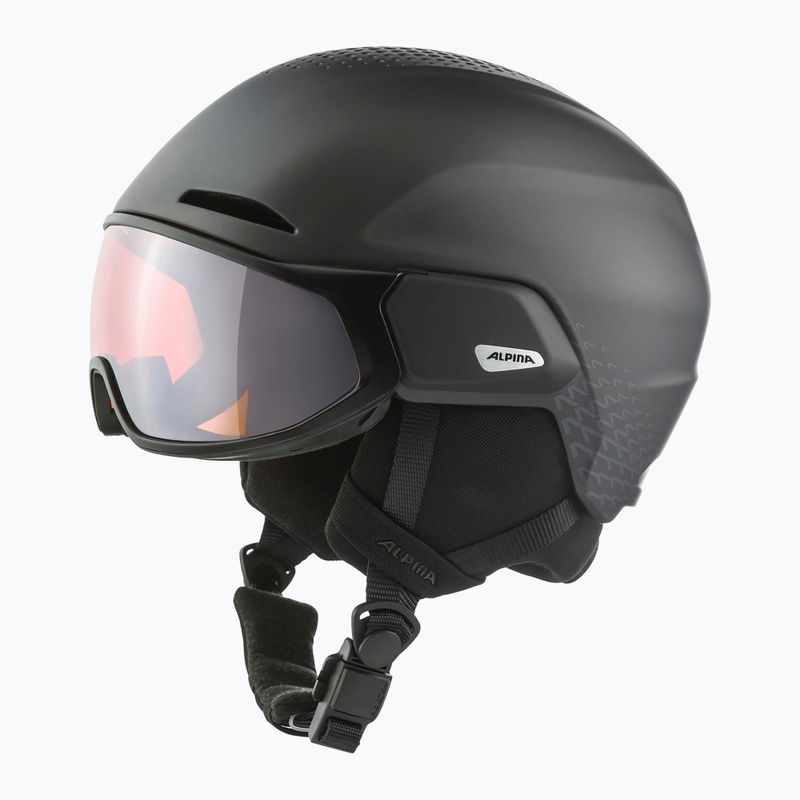 Ски каската Alpina Oro QV Mips charcoal metallic разполага с отстраняеми меки наушници Soft, които лесно могат да се адаптират към индивидуалните предпочитания. Визьорът с поляризационен и фотохроматичен филтър осигурява отлична защита на очите при различни светлинни условия. Каската отговаря на стандартите за безопасност EN 1077:2007 B, което потвърждава високото ѝ качество и надеждност.