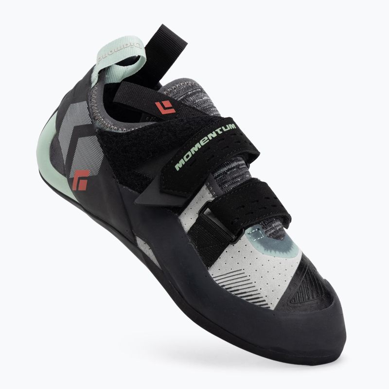 Моделът Black Diamond Momentum Climbing е оборудван с удобна система за закопчаване с велкро, която позволява бързо адаптиране на обувката към формата на стъпалото. Меката конструкция на обувката и ниската твърдост повишават комфорта по време на дълги тренировки или първи уроци на стена. Проектът е базиран на женската анатомия, предлагайки подходяща ширина и профилиране за повишаване на удобството при носене.