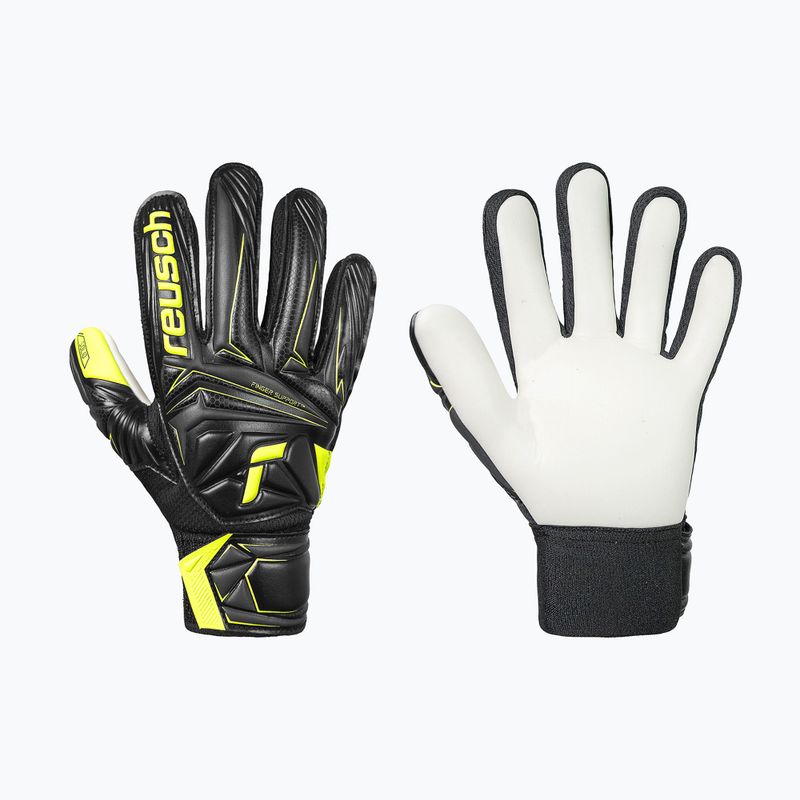 Детски вратарски ръкавици Reusch Attrakt Starter Solid Finger Support Junior black/safety yellow (5672511-7752)