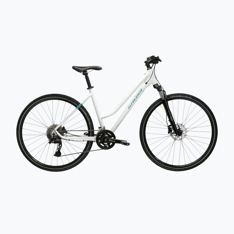 Дамски крос велосипед KROSS Evado 7.0 W white/turquoise/shiny (KREV7Z28X19W005772)